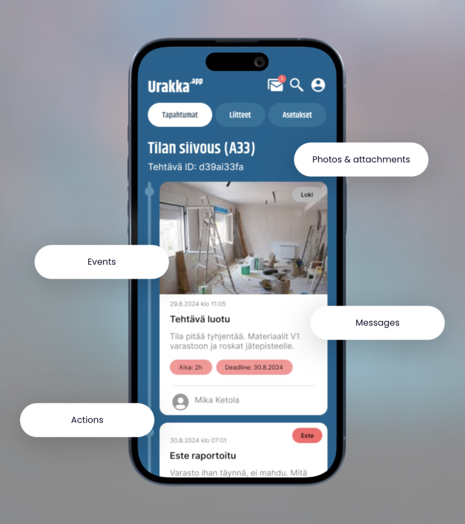 Urakka.app is built for teams that get things done: from construction and property maintenance to cleaning and other fieldwork. If your people wear overalls, this app is made for you.